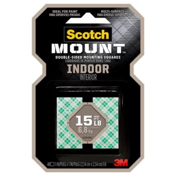 1 x 1 3M 111H-SQ-48 White Scotch Indoor Mounting Squares, 48-Pack
